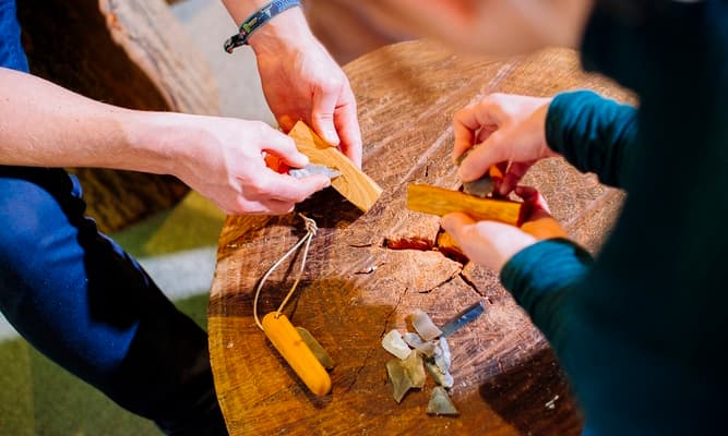 Anschließend geht es zur Steinzeitwerkstatt (ca. 300 m entfernt), wo ihr euer eigenes Steinzeitmesser herstellt. Danach folgt das Speerschleuder-Erlebnis im Außenbereich der Werkstatt. Zum Abschluss gemeinsames Anstoßen und Teamfoto. Bitte meldet euch zu Beginn beim Besucherservice im Foyer des Museums.