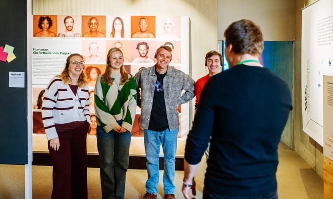 Das Programm findet in der Sonderausstellung „2 Millionen Jahre Migration“ statt, die der Klasse für eine Stunde exklusiv zur Verfügung steht. Nach einer Führung arbeiten die Schülerinnen und Schüler in kleinen Gruppen und werten ihre Ergebnisse gemeinsam aus.